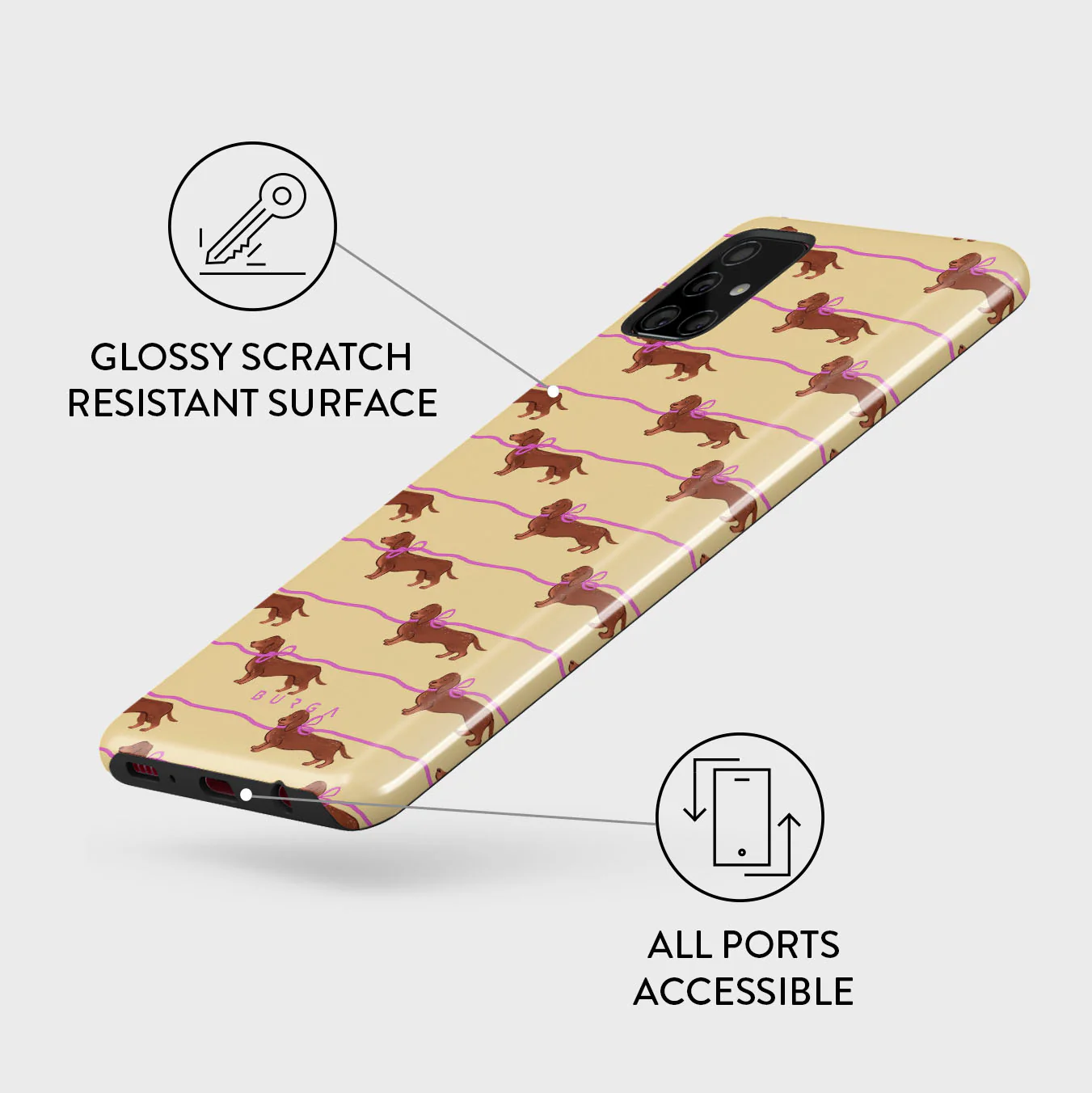 En este diseño: perros salchicha con lazos rosas, perros adorables