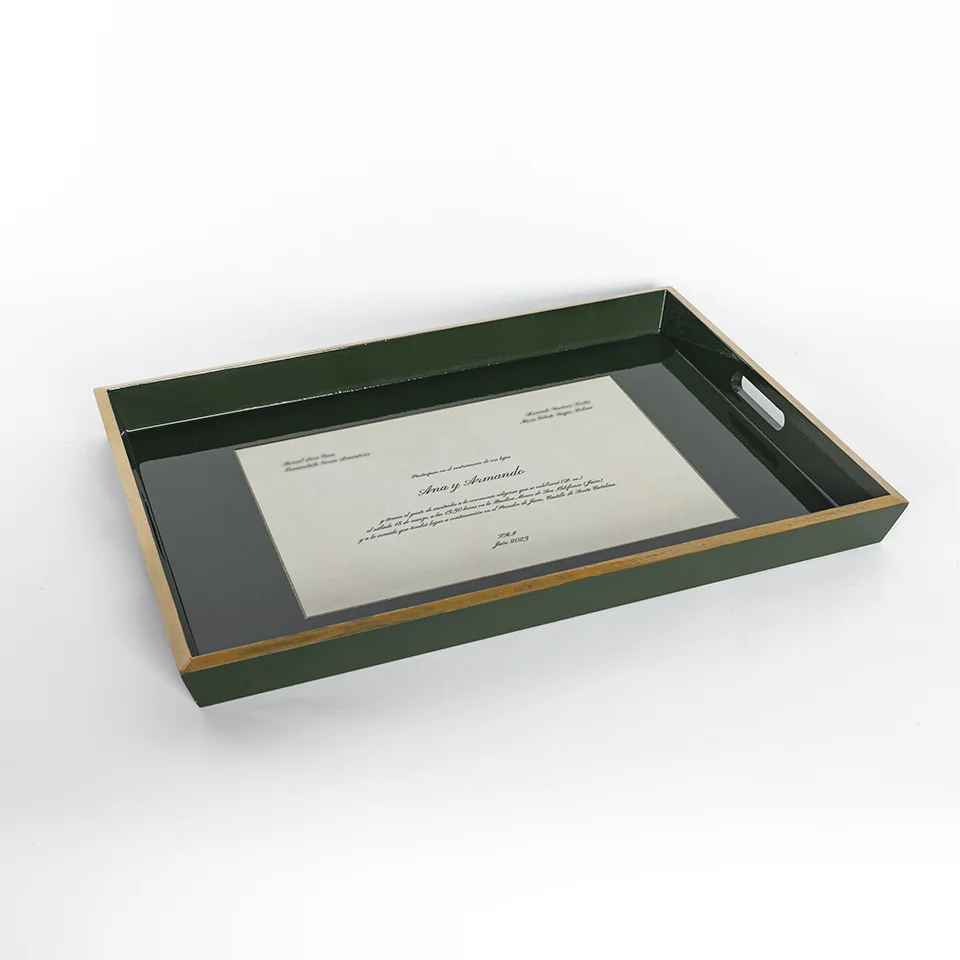 Estampamos la invitación en el centro de la bandeja y tú eliges la base de color.