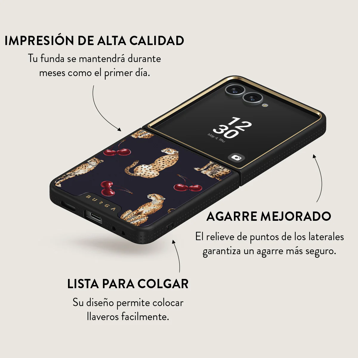¡El centro de todas las miradas! Despídete de los diseños aburridos y da la bienvenida a nuestras fundas de móvil con diseños únicos y super resistentes para Samsung Galaxy Z Flip 7 . A parte de su protección a prueba de golpes, nuestras fundas rígidas tienen un tacto suave y agradable, ¡no pasarán desapercibidas! Se acabaron las fundas voluminosas y sosas, todo lo necesario es: una cobertura total y un diseño que refleje TU estilo. ¿Listo para ser el centro de atención?