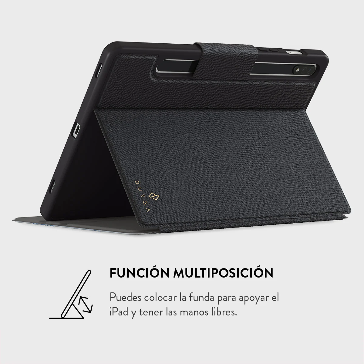 - Su función multiposición permite apoyar el Samsung Galaxy Tab como mejor te convenga para ver y escribir cómodamente.