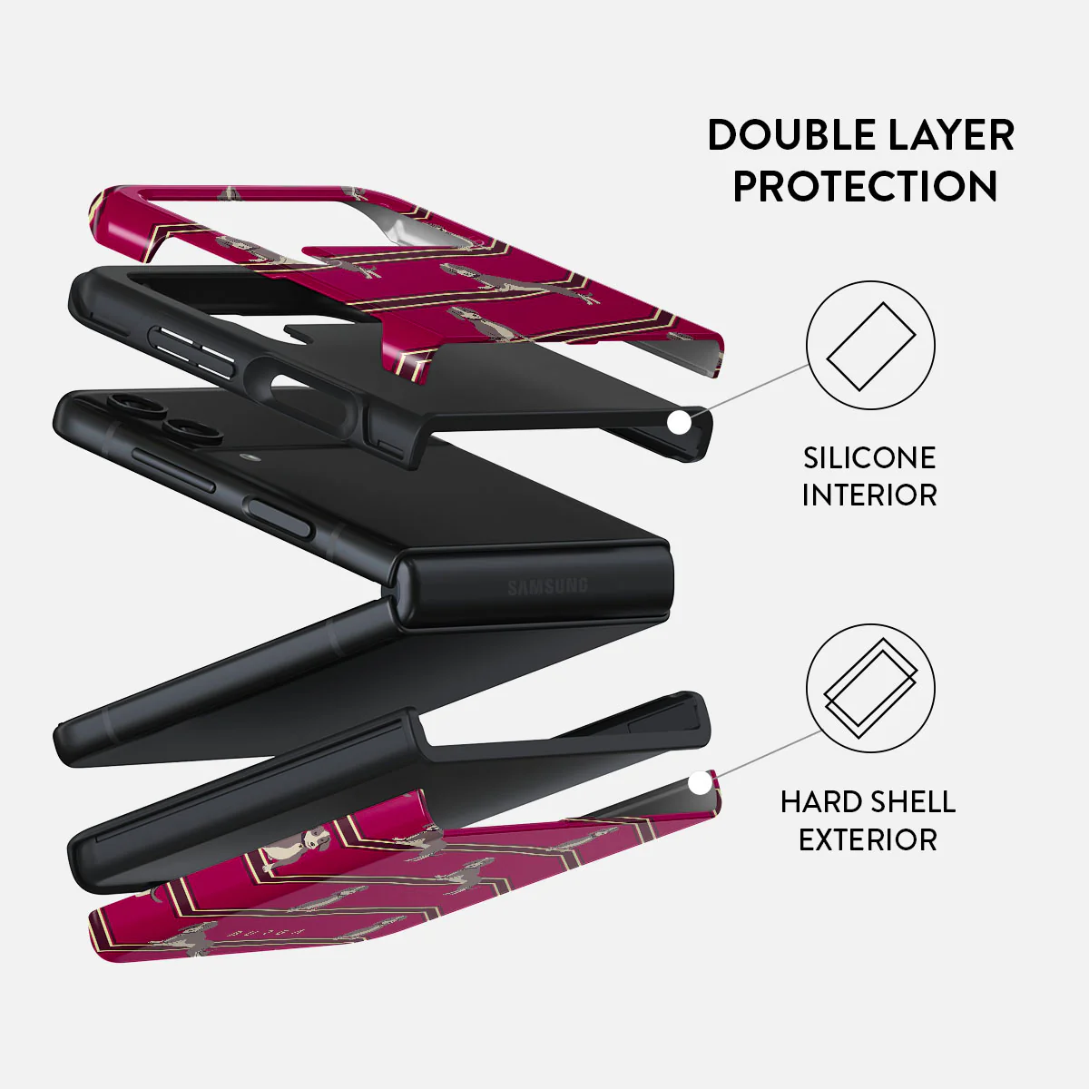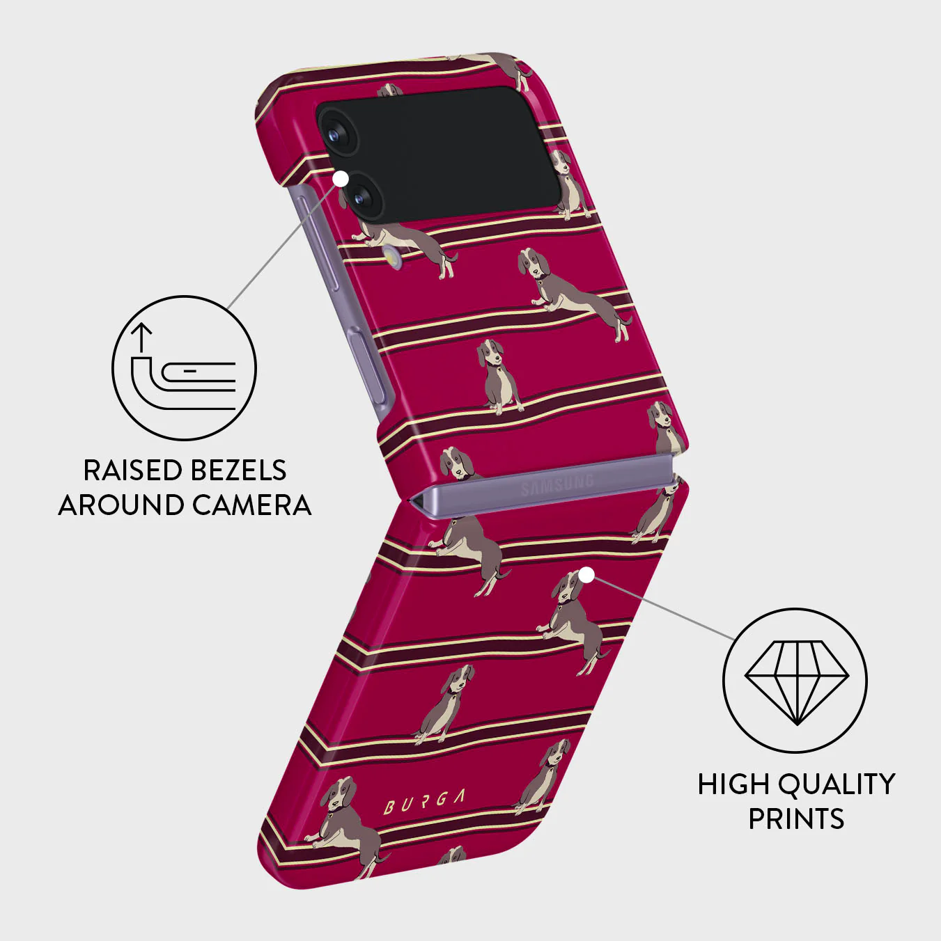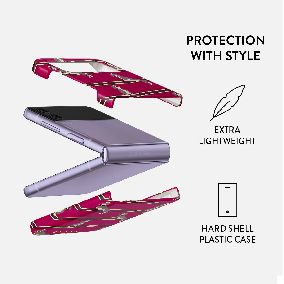 ¡El centro de todas las miradas! Despídete de los diseños aburridos y da la bienvenida a nuestras fundas de móvil con diseños únicos y super resistentes para Samsung Galaxy Z Flip 4 . A parte de su protección a prueba de golpes, nuestras fundas rígidas tienen un tacto suave y agradable, ¡no pasarán desapercibidas! Se acabaron las fundas voluminosas y sosas, todo lo necesario es: una cobertura total y un diseño que refleje TU estilo. ¿Listo para ser el centro de atención?
